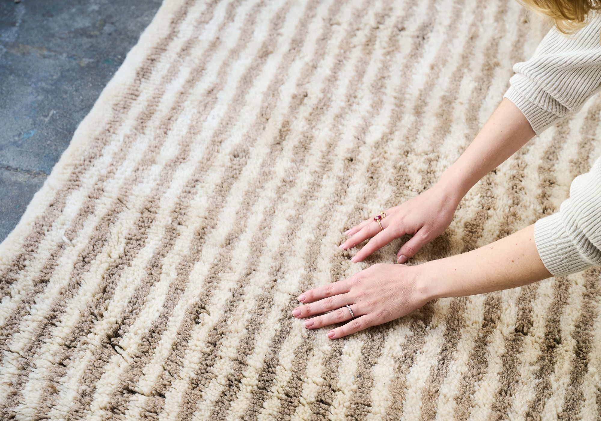 Our rugs are made with the most natural ingredients, ensuring our dyes and washes are non-toxic and formaldehyde free. We have our own quality control, operations, and logistics team based in Morocco and our Founder personally visits our weavers annually to oversee production.